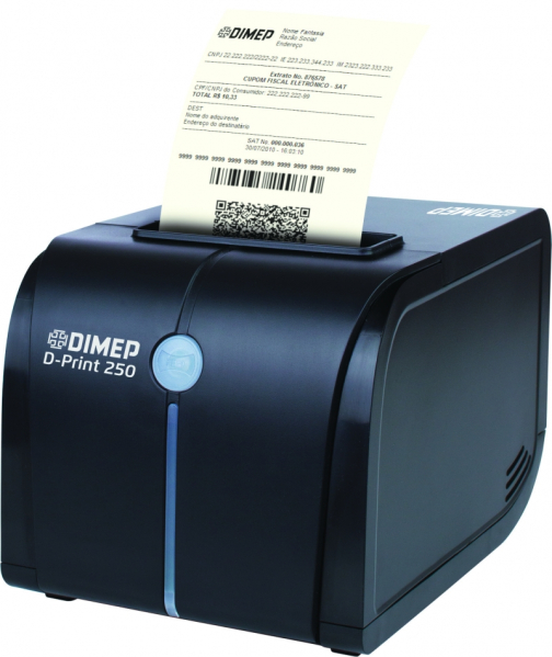 Projetada com alta tecnologia a D-PRINT imprime imagens, logos, código de barras e QR Codes no cupom fiscal eletrônico. Equipada com sistema drop-in, que permite a troca rápida de bobina, apresenta também guilhotina para corte automático do papel.