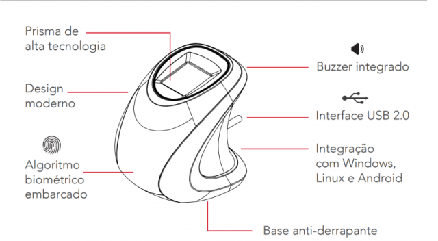Sua interface USB de alta velocidade e kit de integração com os principais sistemas operacionais (Windows, Linux e Android) garantem facilidade na utilização e agilidade nas autenticações, viabilizando a identificação e a validação biométrica de mais de mil usuários por segundo.